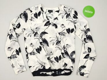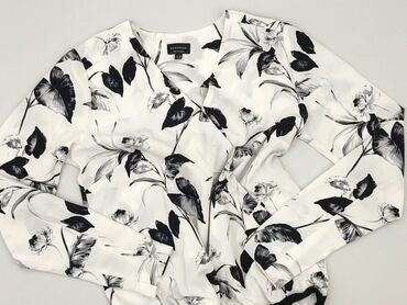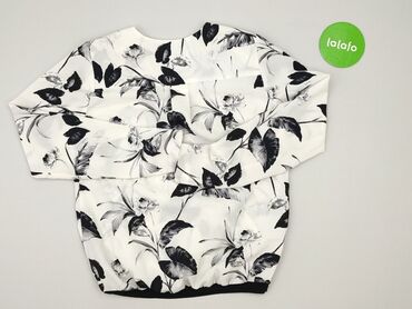 Bluzka damska z długim rękawem, rozmiar 38. - Kolor: biały z czarno‑szarym, kwiatowym nadrukiem na całej powierzchni - Krój: lekko luźny, zaokrąglony dół, tył nieco dłuższy - Dekolt: w serek z krót...