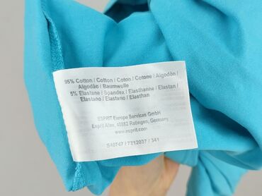 Niebieska bluzka damska EDC by Esprit - Fason: luźna bluzka z marszczeniami przy dekolcie, dekolt okrągły z krótkim rozcięciem i guzikiem, rękawy 3/4 zakończone gumką. - Materiał: 100% wiskoza ECO...