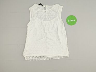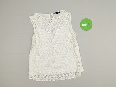 Biała bluzka bez rękawów New Look - Materiał: lekka, miękka dzianina z podszewką; przód pokryty ażurową koronką o kwiatowym motywie - Fason: prosty, zwiewny; lekko dłuższy tył - Dekolt: okrągły z ...