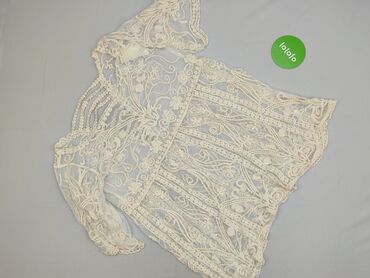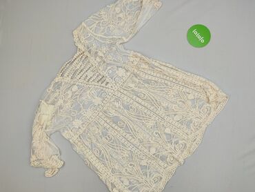 Ażurowa bluzka dzianinowa, ręcznie robiona na drutach w kolorze ecru/śmietankowym. - Krój: prosty, lekko pudełkowy, z krótkimi rękawami typu motylek - Dekolt: półokrągły, wykończony falbankową lam...