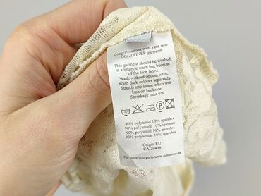 Beżowa koszulka/halka damska z koronką - Krój: bez rękawów, dekolt w kształcie litery V z przodu i z tyłu - Wykończenie: delikatna, kremowa koronka wzdłuż dekoltu i ramion - Materiał: 95% polieste...Stan: