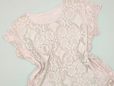 Bladoróżowa bluzka damska Made in Italy – New Collection - Krój luźny, z krótkim rękawem typu kimono - Ozdobne, ażurowe wstawki/koronka na ramionach - Okrągły dekolt - Zaokrąglony dół - Materiał: ...