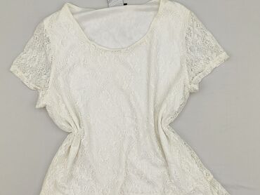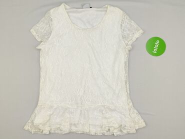 Biała damska bluzka JANINA, rozmiar L - Fason: luźny T‑shirt z krótkim rękawem (opadające ramiona) - Dekolt: okrągły - Ozdoba: koronkowa wstawka na górze przodu i ramionach z motywem kwiatowym - M...Stan: