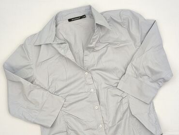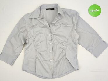 Szara koszula damska z długim rękawem, rozmiar M. - Fason koszulowy, zapinana z przodu na rząd białych guzików - Długi rękaw z mankietem; możliwość podwinięcia - Klasyczny kołnierzyk - Delikatna k...