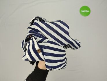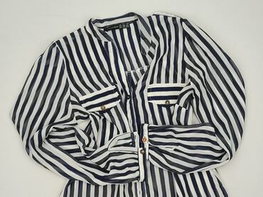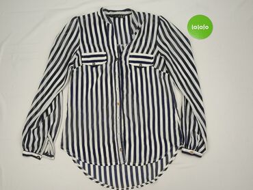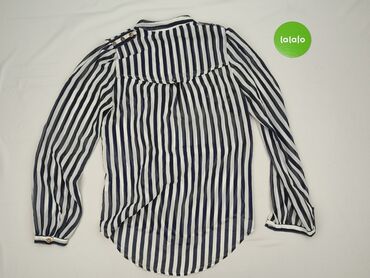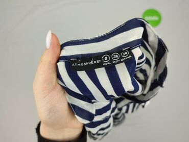Koszula damska Atmosphere - Klasyczny model w pionowe paski: biało-niebieskie cienkie prążki - Zapięcie na rząd białych guzików z przodu oraz na mankietach - Długi rękaw z możliwością podpięcia (p...