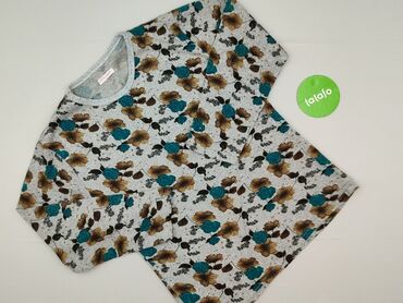 Bluzka damska z krótkim rękawem, rozmiar L. - Kolor: szary - Wzór: kwiatowy (róże w odcieniach różu, żółci i bieli z zielonymi gałązkami) rozmieszczony z przodu i z tyłu - Krój: prosty, luźniejszy...