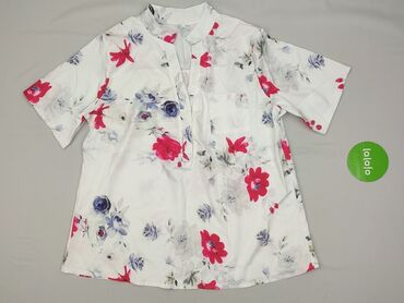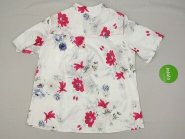 Bluzka damska z krótkim rękawem – rozmiar XL - Kolorystyka: biały w niebieski, roślinny/kwiecisty wzór na całej powierzchni - Krój: lekko luźny, z zaokrąglonym dekoltem i delikatnie opuszczonymi r...