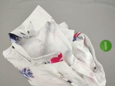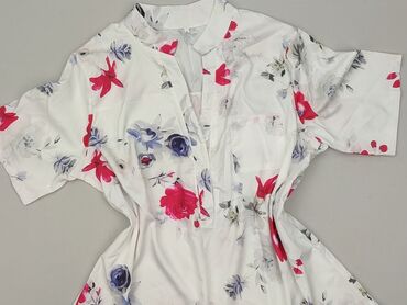 Biała bluzka damska z kwiatowym nadrukiem - Luźny krój z opadającym rękawem (nietoperz/dolman), okrągły dekolt - Przód zdobi duży, kolorowy nadruk kwiatów w stylu akwareli - Tył gładki z małym roz...