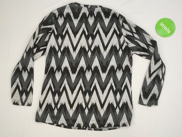 Bluzka damska z długim rękawem, wzór zygzak/geometryczny w odcieniach czerni, bieli, szarości i karmelu. Okrągły dekolt delikatnie ozdobiony drobnymi aplikacjami (kryształki). Tkanina elastyczna i ...Stan: