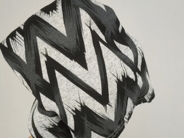 Bluzka damska z krótkim rękawem - Krój: lekko taliowany T-shirt z dekoltem w kształcie łezki i krótką listwą guzikową (kilka metalowych guziczków z przodu). - Wzór: drobna, geometryczna mozaika w ...