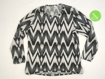 Bluzka damska z długim rękawem, wzór zygzaków w odcieniach fioletu, czerni i szarości. - Dekolt: w kształcie litery V. - Materiał: 95% wiskoza, 5% elastan – miękka, elastyczna i przyjemna w dotyku...
