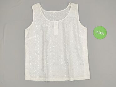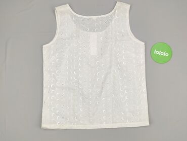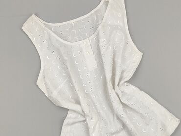 Biała damska bluzka bez rękawów z haftem angielskim - Krój: luźny, bez rękawów - Dekolt: w kształcie litery V, zapinany na trzy guziczki przy dekolcie - Materiał: ażurowa tkanina z haftem angielsk...Stan: