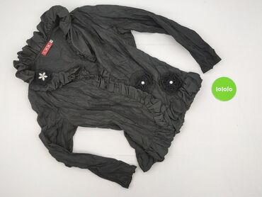 Czarna bluzka damska z długim rękawem z siateczki - Krój: krótka, dopasowana talia z marszczeniem, dekolt w kształcie litery V - Zapięcie: rząd ozdobnych, obciąganych materiałem guzików z przodu -...