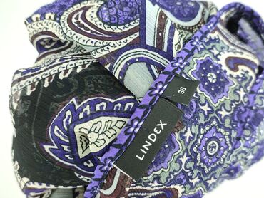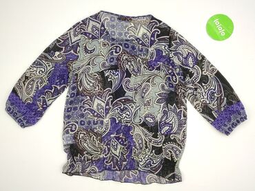 Bluzka damska Lindex, rozmiar S (EUR/UK). - Fason: z długim rękawem, kopertowy/zakładany przód z dekoltem w kształcie V - Wzór: wielobarwny, abstrakcyjne liście/pióra w odcieniach granatu, fioletu...