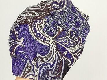- Wzór: bogate paisley i geometryczne motywy patchwork w odcieniach fioletu, czerni, szarości i bieli; kontrastowe wstawki przy dekolcie i na mankietach.