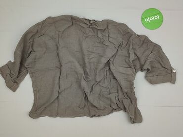 Bluzka damska z dekoltem V, beżowo–taupe - Lekka, przewiewna tkanina z naturalnym składem: 35% len, 35% bawełna, 30% poliester (metka na zdjęciu). - Delikatnie pognieciona faktura materiału o subt...Stan: