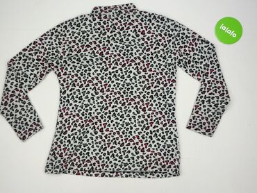 Bluzka damska w panterkę - Wzór: leopard print (czarno‑szare cętki na jasnym tle) - Fason: koszulowa bluzka/tunika z długim rękawem - Dekolt w serek z listwą guzikową (ozdobne guziki z przodu) - T...Stan:
