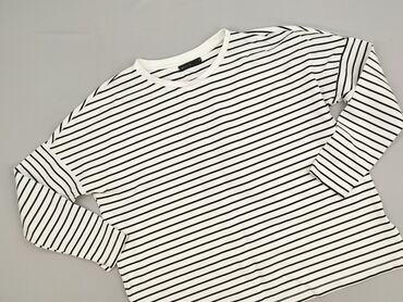 Bluzka damska MOHITO z długim rękawem - Marka: Mohito (metka widoczna na zdjęciu) - Fason: klasyczny T-shirt z okrągłym dekoltem, długi rękaw - Wzór: cienkie, poziome paski - Kolor: beżowy z biały...
