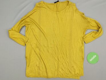 Rękaw 3/4Lekka bluzka damska marki M&Co w kolorze żółtym, idealna na codzienne stylizacje. Charakteryzuje się okrągłym dekoltem i długimi rękawami z ażurowymi wstawkami, które dodają jej subtelności. Pionowe ażurowe pasy biegnące z przodu bluzki dodatkowo ją ozdabiają. Bluzka posiada swobodny krój, zapewniający komfort noszenia. Dół bluzki oraz rękawy zakończone są delikatnym ściągaczem. Wykonana z mieszanki wiskozy i akrylu, co gwarantuje miękkość i dopasowanie do sylwetki. Idealna do noszenia samodzielnie lub jako element warstwowej stylizacji.