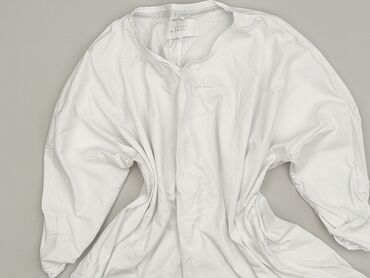 Biała, lekka bluzka damska z delikatnym, roślinnym żakardowym wzorem na całej powierzchni. - Krój luźny, lekko wydłużony tył (asymetryczny dół). - Rękaw do łokcia. - Okrągły dekolt z dopasowaną pl...