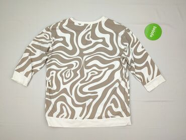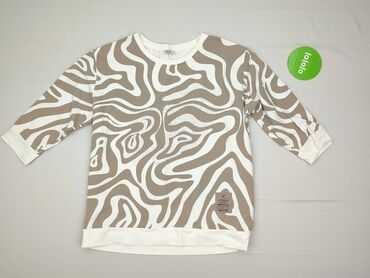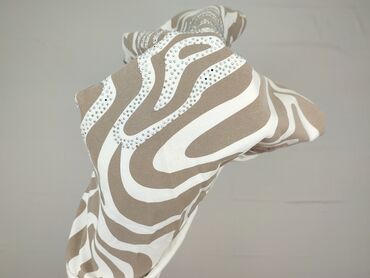 Bluzka damska z krótkim rękawem, wzór w beżowe „animal/abstract” plamki. - Krój: luźny, lekko wydłużony tył (asymetryczny dół), okrągły dekolt. - Rękawy z możliwością podpięcia na napy (zapinane g...
