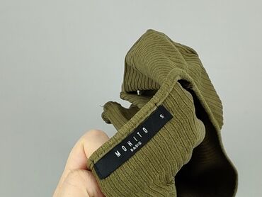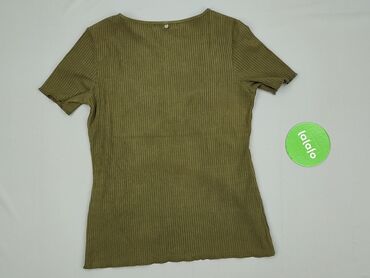 Bluzka damska Mohito Collection - Kolor: oliwkowa zieleń - Rozmiar z metki: S - Fason: dopasowana, prążkowana dzianina - Dekolt: głęboki V z ozdobnym kółkiem i marszczeniem na środku - Rękaw: do ł...