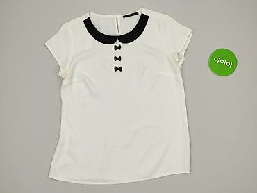 Bluzka damska Mohito - Marka: Mohito - Rozmiar z metki: 34 - Kolor: biały/ecru - Fason: lekko luźny, z długim rękawem - Dekolt: okrągły, z tyłu zapięcie na mały guziczek - Ozdoby: trzy złote kokar...Stan: