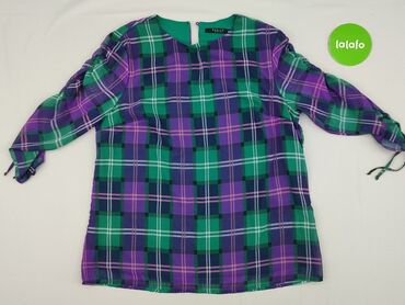 Damska bluzka marki Mohito w rozmiarze 40, wykonana w 100% z poliestru. Posiada kołnierzyk i zapięcie na guziki. Wzór w odcieniach fioletu i zieleni nadaje jej unikalny charakter. Bluzka wyprodukow...