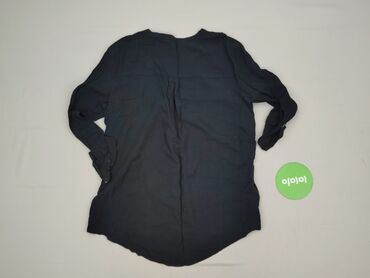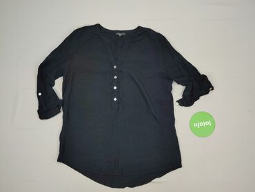 Czarna bluzka damska MONTEGO - Fason: luźny, z dekoltem w serek - Zapięcie: krótka listwa guzikowa z przodu (4 jasne guziki) - Rękawy: długie, z możliwością podpięcia – patki i guziki na obu rękaw...