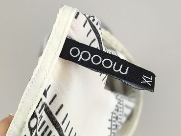 Bluzka damska Moodo, rozmiar XS. - Krój: luźny, z długim rękawem - Wzór: białe tło w drobne czarne kropki (groszki) - Kołnierzyk i mankiety: kontrastowe, czarne; mankiety zapinane na guziki - Mate...