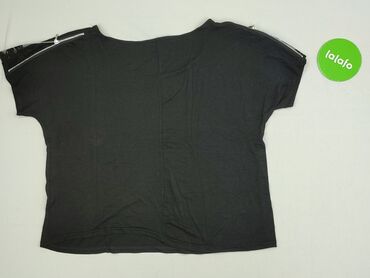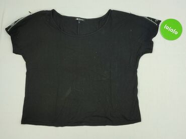 Czarna bluzka damska MONITO, rozmiar S. - Krój: dopasowany, z krótkim rękawem - Materiał: przód i boki z fakturowanej dzianiny w drobny, kropkowany wzór; tył gładki, miękki jersey - Dekolt: okrągł...