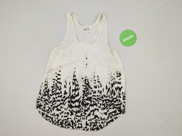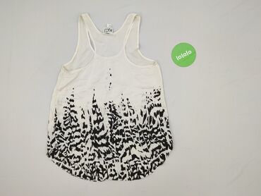 Biała damska koszulka bez rękawów z nadrukiem na przodzie. - Krój: top/sleeveless, okrągły dekolt, delikatne rozcięcia po bokach u dołu - Materiał: 100% wiskoza (lekka, miękka, przewiewna) - Kolor...Bluzka damska na ramiączkach marki 1971 Reiss w rozmiarze UK 10 / USA 6. Bluzka w kolorze białym, ozdobiona czarnym wzorem przypominającym pociągnięcia pędzla lub rozbryzgi farby, zajmującym dolną część ubrania. Ma okrągły dekolt i fason bez rękawów, idealny na ciepłe dni. Bluzka jest wykonana z lekkiego materiału, co zapewnia komfort noszenia i swobodę ruchów. Produkt idealnie sprawdzi się na co dzień, zarówno do luźnych, jak i bardziej eleganckich stylizacji, dodając im unikalnego charakteru. To uniwersalna opcja do noszenia samodzielnie lub jako element warstwowej stylizacji.