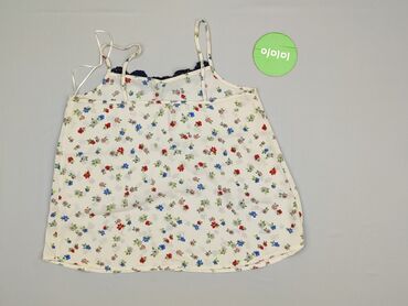 Damska bluzka na ramiączkach w kwiaty - Krój: luźny top z cienkimi, regulowanymi ramiączkami - Dekolt: falbana opadająca na przód i ramiona, tworząca efekt delikatnego rękawka - Wzór: drobny, akwa...