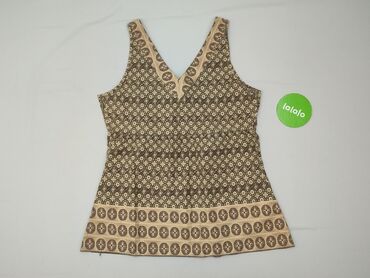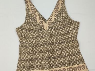 Używana, ale w idealnym stanie bluzka damska na ramiączkach. Wykonana z połyskującego materiału w kolorze szampańskim, z delikatnymi, kremowymi ramiączkami z tkaniny. Ramiączka można zawiązać na ró...