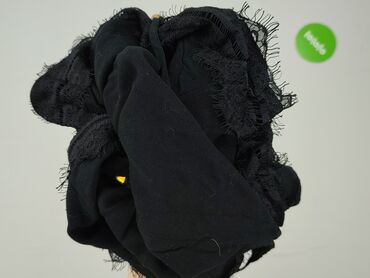 Czarna damska bluzka bez rękawów - Krój: luźny, z kimono‑podobnymi, opadającymi rękawkami - Dekolt: w kształcie litery V z miękko układającym się kołnierzykiem/stójką - Materiał: 100% poliester (m...