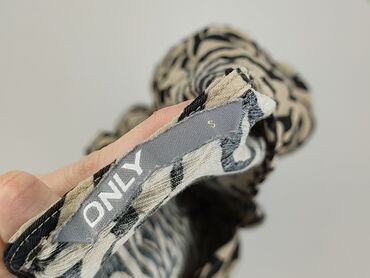 Bluzka damska z krótkim rękawem, wzór w beżowe „animal/abstract” plamki. - Krój: luźny, lekko wydłużony tył (asymetryczny dół), okrągły dekolt. - Rękawy z możliwością podpięcia na napy (zapinane g...