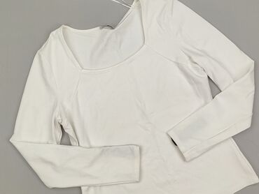 Bluzka damska Orsay z długim rękawem - Kolor: biały/ecru - Krój: dopasowany, lekko zaokrąglony dół - Dekolt: szeroki, łódkowy - Rękawy: długie - Ozdoba: subtelny, ton w ton haft/żakardowy wzór pai...