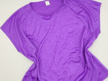 Bluzka damska 4XL – czarna, z fioletową wstążką - Krój: luźny, prosta linia, krótkie szerokie rękawy, okrągły dekolt - Detal: fioletowa dekoracyjna wstążka/pasek wszyty z boku, do związania - Mate...