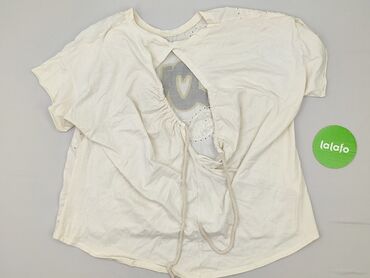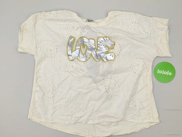 Bluzka damska w kolorze białym z koronkowymi wstawkami - Krój: luźny, z okrągłym, marszczonym dekoltem - Rękawy: krótkie, w całości z ażurowej koronki - Dół: szeroki pas koronkowy dopasowany styli...