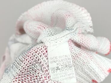 - Materiał: 100% poliester (metka na zdjęciu), lekka dzianina o siateczkowej strukturze
