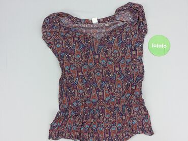 Bluzka damska Camaïeu - Krój: luźny, prosty, z delikatnie zaznaczoną talią i krótkim rękawem (kimono/dropped shoulder). - Dekolt: okrągły z małym pęknięciem na karku. - Wzór: drobne, nieregularne ...Stan: