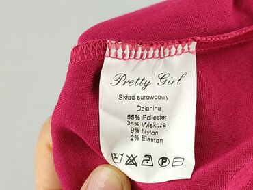 Bluzka damska w kolorze intensywnej fuksji. - Krój: prosty, lekko taliowany - Dekolt: okrągły z subtelnym rozcięciem w kształcie V - Rękawy: 3/4 - Rozmiar z metki: 38 - Skład materiału: 95% polies...