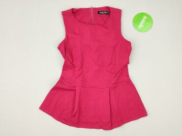 Bez rękawówBluzka damska w kolorze fuksji, z krótkim rękawem i dekoltem w kształcie serca, dodającym uroku. Fason peplum, z rozkloszowanym dołem od talii, tworzy elegancką sylwetkę. Zapinana na zamek błyskawiczny, co ułatwia zakładanie. Idealna propozycja do stylizacji na specjalne okazje, dodaje świeżości i oryginalności do każdej garderoby.