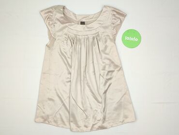 Krótki rękawElegancka bluzka damska z krótkim rękawem, wykonana w 100% z poliestru, co zapewnia trwałość i łatwość w pielęgnacji. Bluzka w jasnym, neutralnym kolorze beżu lub écru, pasująca do wielu stylizacji. Charakteryzuje się okrągłym dekoltem oraz delikatnymi falbankami lub marszczeniami przy ramionach, dodającymi jej subtelności. Z przodu widoczne są drobne plisy, które nadają bluzce elegancki wygląd i strukturę. Idealna do noszenia na co dzień, do pracy lub na specjalne okazje, zapewniająca wygodę i styl. Jest to uniwersalny element garderoby, który można łączyć zarówno z formalnymi, jak i bardziej swobodnymi elementami ubioru. Bluzka jest używana.