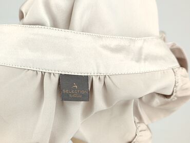Bluzka damska z falbanami, beżowa - Krój: luźny, prosty, długość do bioder - Rękawy: krótkie z efektownymi, podwójnymi falbanami - Dekolt: zaokrąglony z przodu; z tyłu wiązanie na tasiemki - Talia...