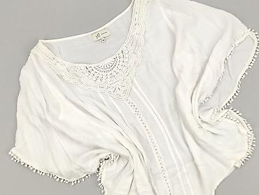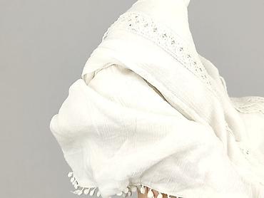 Biała, ażurowa bluzka/ponczo w stylu boho. - Kolor: ecru/śnieżna biel - Krój: luźny, poncho/top zakładany przez głowę - Dekolt: szeroki, półokrągły z ozdobną koronką i drobnymi kuleczkami na krawę...