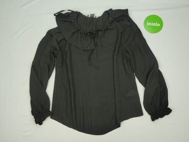 Czarna bluzka damska Primark - Krój: luźny, z opuszczoną linią ramion - Dekolt: typu polo z listwą i trzema jasnymi guzikami - Kołnierzyk: klasyczny - Rękawy: długie z możliwością podpięcia na pat...Stan: