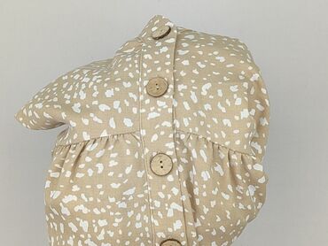 Bluzka damska Primark Cares, rozmiar S. - Kolor: ecru/kremowy z nadrukiem granatowo-niebieskich kropek (akwarelowy efekt). - Fason: prosta bluzka z krótkim rękawem do łokcia, delikatnie bufiane ra...
