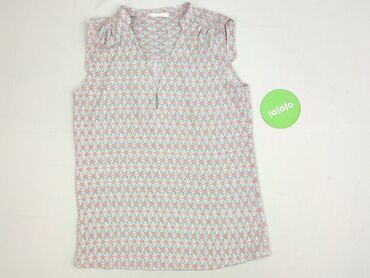 Bluzka damska Promod - Krój: luźny, bez rękawów (opadające ramiona) - Dekolt: w serek z delikatną zakładką/kokardką - Wzór: drobna grafika geometryczna na jasnoróżowym tle (czarno-białe detale) - ...