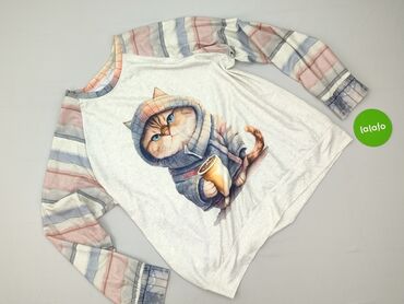 Szara bluzka damska FREESTILL z ozdobnymi wycięciami na ramionach i aplikacją kota w okularach wykonanej z drobnych, błyszczących dżetów. Luźny, oversize’owy krój typu nietoperz, szeroki dekolt łód...Stan: